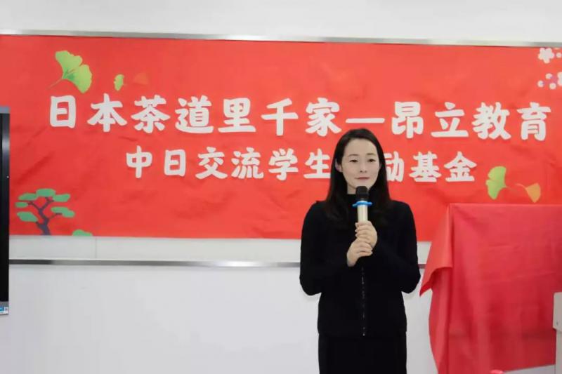 昂立日語江老師也做了致辭。首先感謝各位嘉賓出席“日本茶道里千家—昂立教育中日交流學(xué)生獎(jiǎng)勵(lì)基金”成立儀式暨第一回優(yōu)秀學(xué)生、優(yōu)秀指導(dǎo)教師頒獎(jiǎng)活動(dòng)。2018年是中日和平友好條約締結(jié)40周年,在日本國駐上??傤I(lǐng)事館、片山優(yōu)香里教授、加藤華子領(lǐng)事的幫助指導(dǎo)下,我們在上海交通大學(xué)文治堂迎來了日本茶道里千家千玄室大宗匠講演會(huì)。95歲的大宗匠在演講會(huì)當(dāng)天向上海交大昂立教育贈(zèng)送了100萬日元。大宗匠為中日友好、為世界和平的偉大努力,大宗匠對(duì)我們深情厚誼,我們一直銘記在心。對(duì)茶道里千家、大宗匠、張南攬教授為代表的里千家的老師們,我們常懷感恩之心。經(jīng)日本茶道里千家大宗匠的許可,昂立教育在大宗匠的100萬日元的捐贈(zèng)的基礎(chǔ)上,另外加入100萬日元,成立“日本茶道里千家—昂立教育中日交流學(xué)生獎(jiǎng)勵(lì)基金”,今后昂立日語還會(huì)根據(jù)需要追加資金,用于獎(jiǎng)勵(lì)昂立在校準(zhǔn)備赴日的優(yōu)秀學(xué)生和指導(dǎo)教師。本獎(jiǎng)學(xué)金計(jì)劃最低持續(xù)10年。