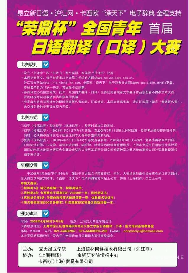 5. 本大賽活動解釋權歸第18屆榮鼎獎全國日漢筆譯口譯大賽評審委員會