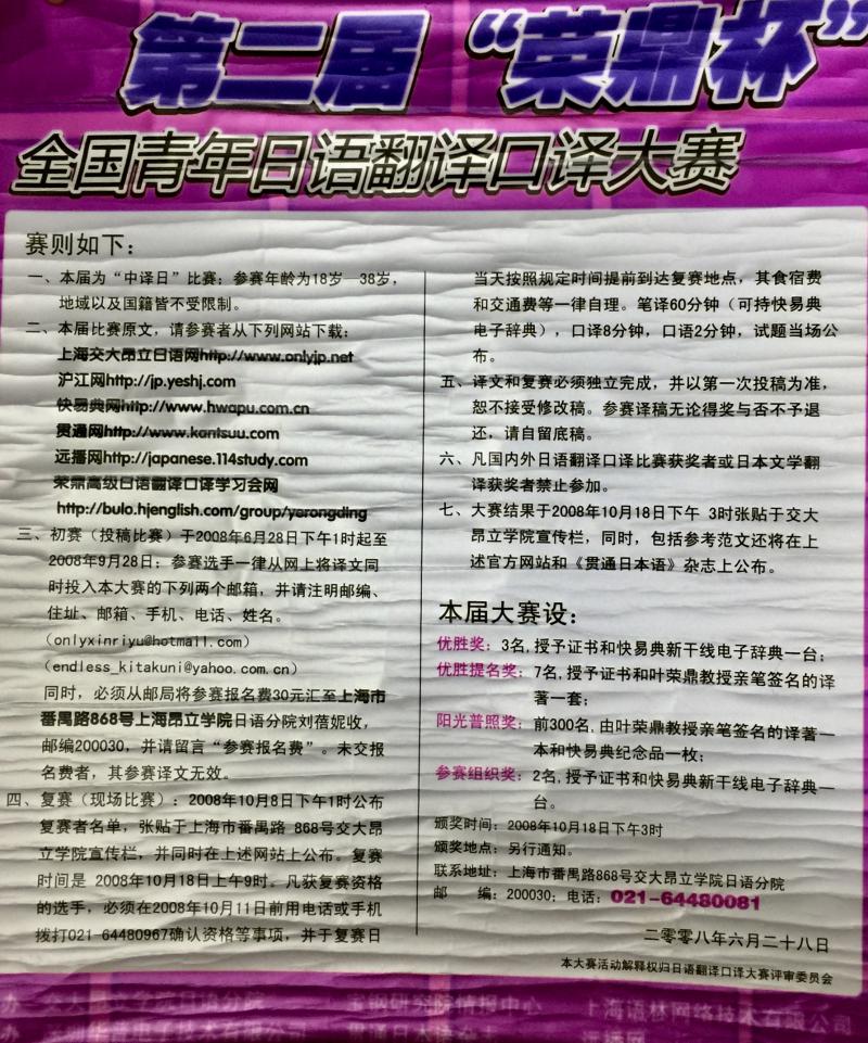 2. 決賽名單將于2021年10月25日由yerongding微信號、昂立日語官網與微信公眾號、上善文化交流中心官網與微信公眾號公布