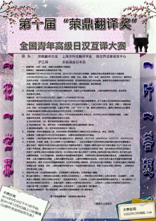 1. 初賽譯文投稿至郵箱1592391395@qq.com